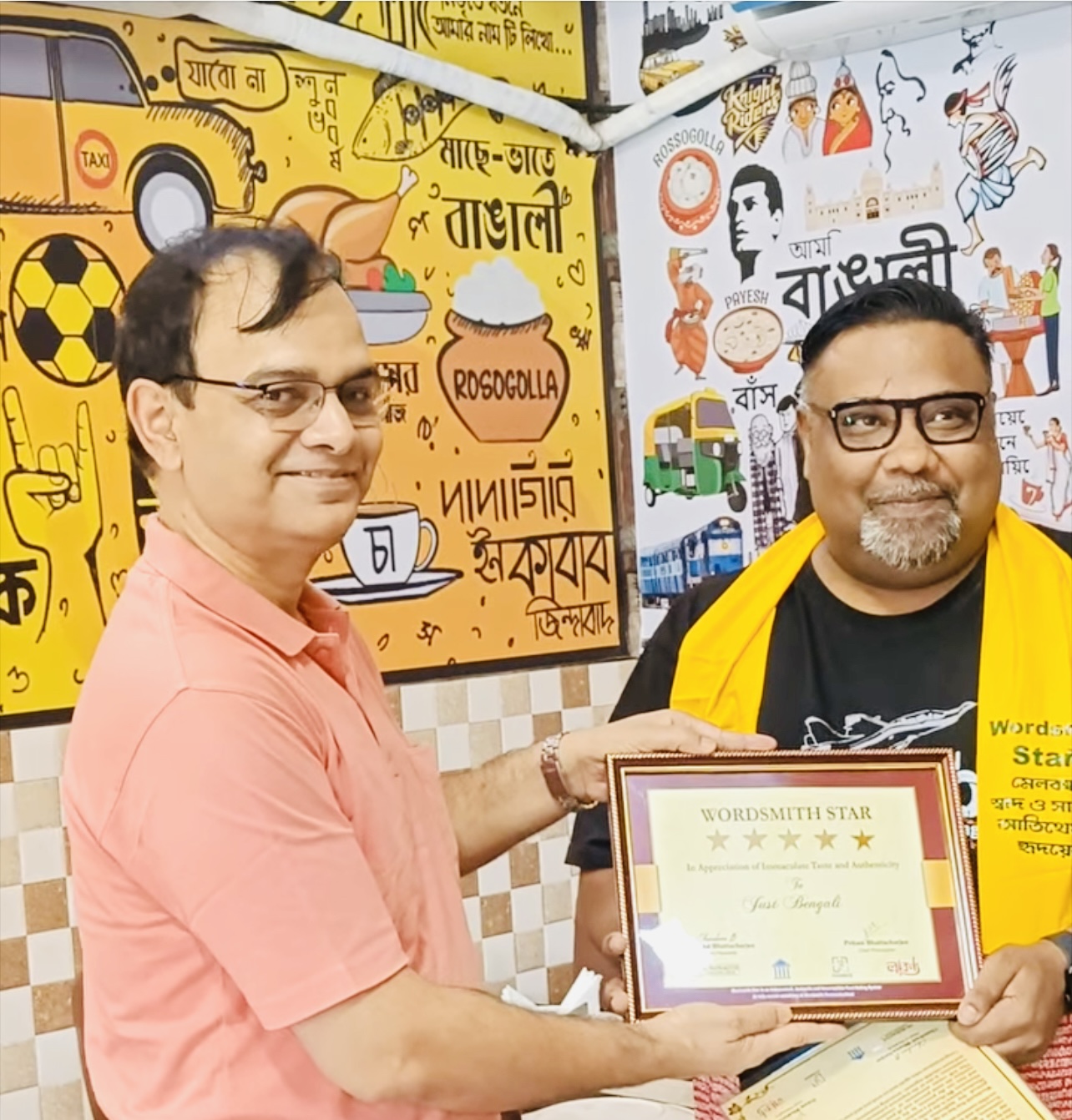 Wordsmith Star is an independent, incognito and incorruptible Food Evaluation System to honour players in the Greater Bengal Food Ecosystem. After Calcutta(21/22, 22/23), London, Cambridge, Birmingham in England and Seattle, Belle Vue and New York in the United States(22/23), Dhaka in Bangladesh(22/23), we are covering Greater Calcutta and will award Wordsmith Star 23/24.